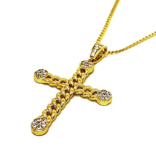 Úvod » Náhrdelníky » PŘÍVĚSEK KŘÍŽE TVOŘENÝ OČKY ZDOBENÝ ZIRKONY(CZ) V BARVĚ 14K ZL NA ŘETÍZKU (60CM)