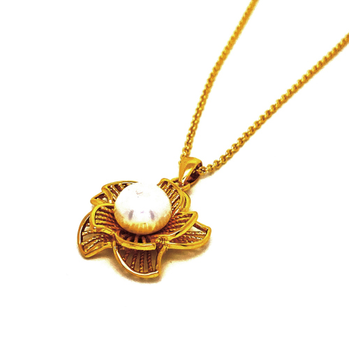 Úvod » Náhrdelníky » PŘÍVĚSEK KVĚTU S PRAVOU KULTIVOVANOU PERLOU NA ŘETÍZKU V BARVĚ ZLATA